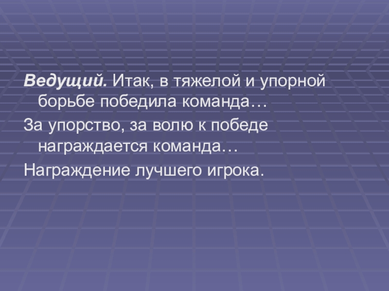 Ведущий. Итак, в тяжелой и упорной борьбе победила команда…