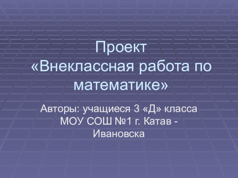 «Внеклассная работа по математике»