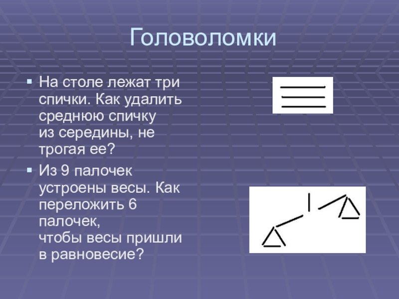 а) игры, задачи, шутки с палочками;