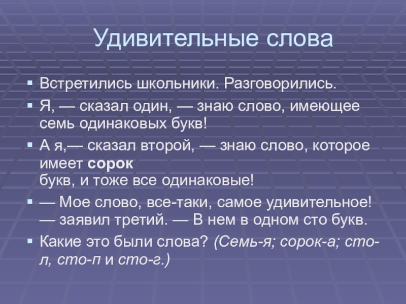 Слайд 21 Удивительные слова