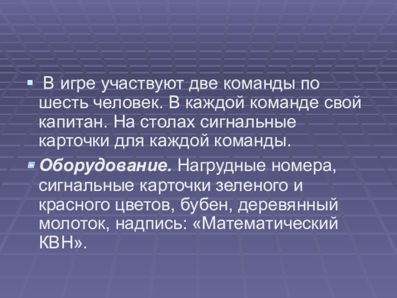Игру можно проводить начиная со II класса.