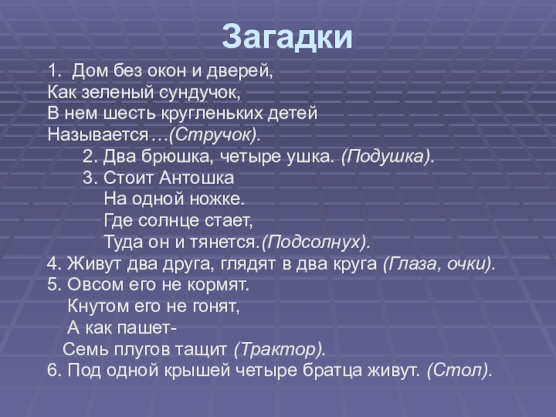 Слайд 20 Загадки