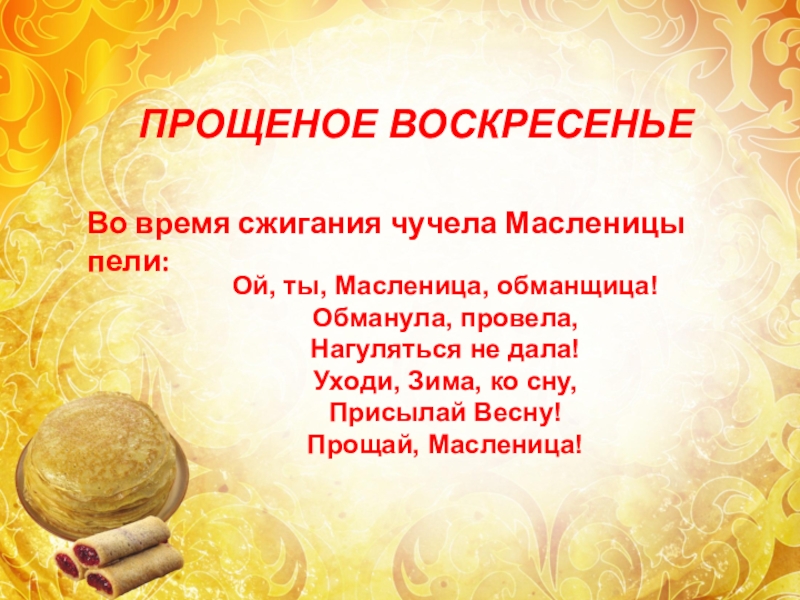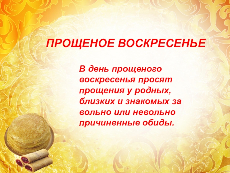 Слайд 18ПРОЩЕНОЕ ВОСКРЕСЕНЬЕ