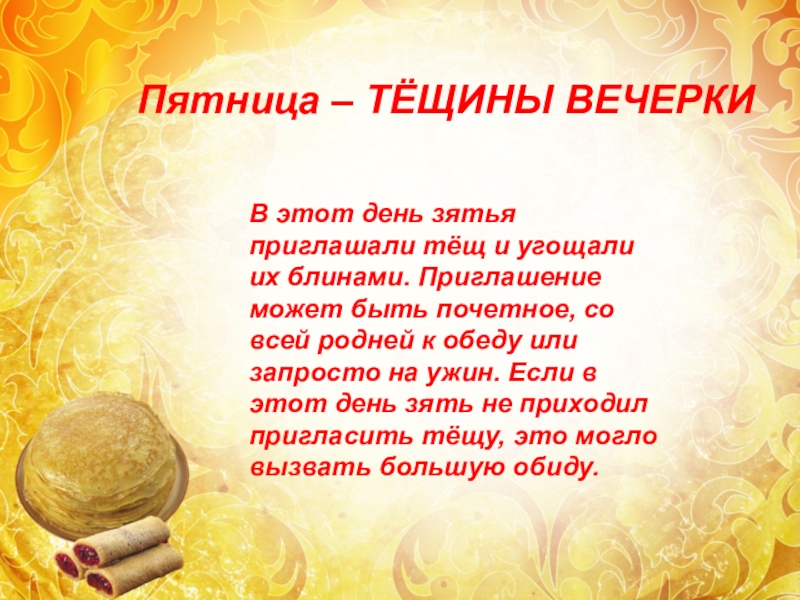 Слайд 12Пятница – ТЁЩИНЫ ВЕЧЕРКИ
