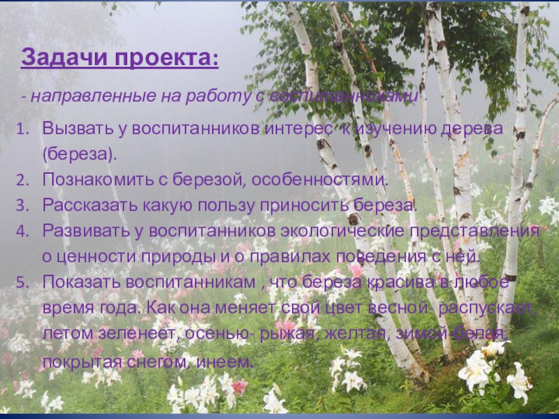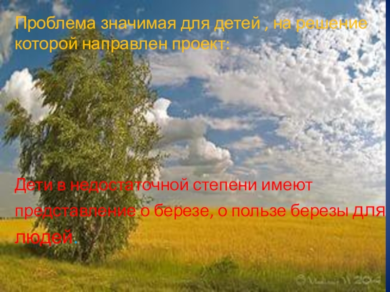 Дети в недостаточной степени имеют представление о березе, о пользе березы для людей.