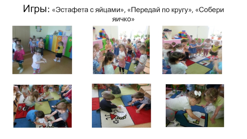 Слайд 8Игры: «Эстафета с яйцами», «Передай по кругу», «Собери яичко»
