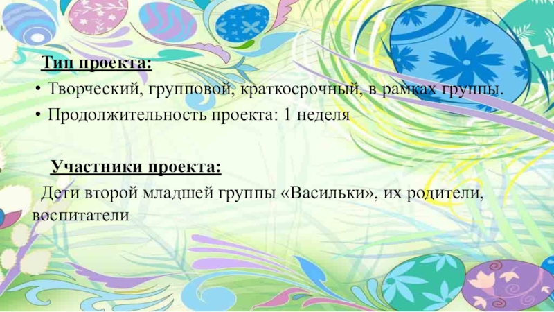 Презентация, доклад на тему Проект во второй младшей группе Светлая Пасха