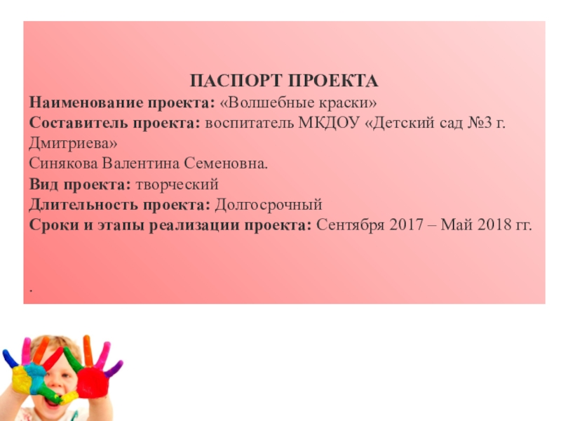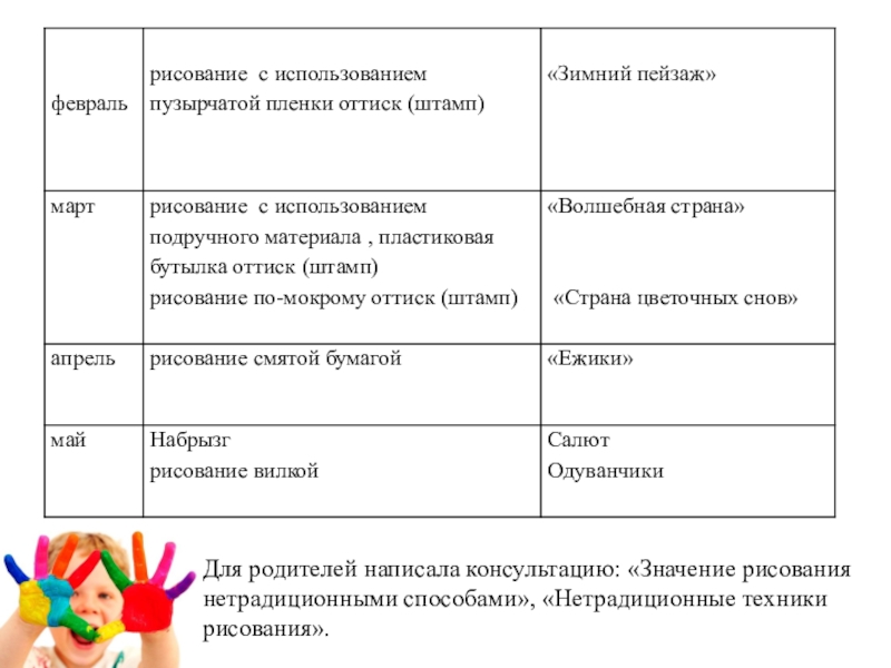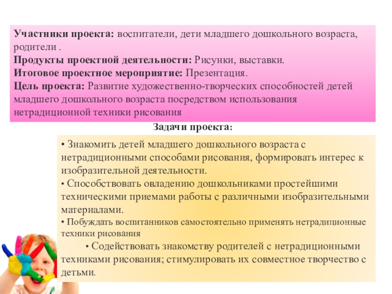 2. Разработка содержания проекта: «Нетрадиционные способы рисования для малышей».
