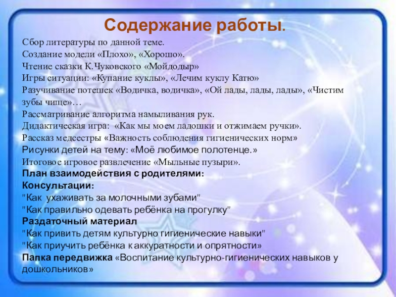 5. Активно привлекать родителей к соблюдению и развитию навыков личной гигиены дома.