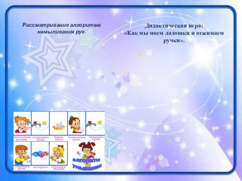 Рассматривание алгоритма намыливания рук.