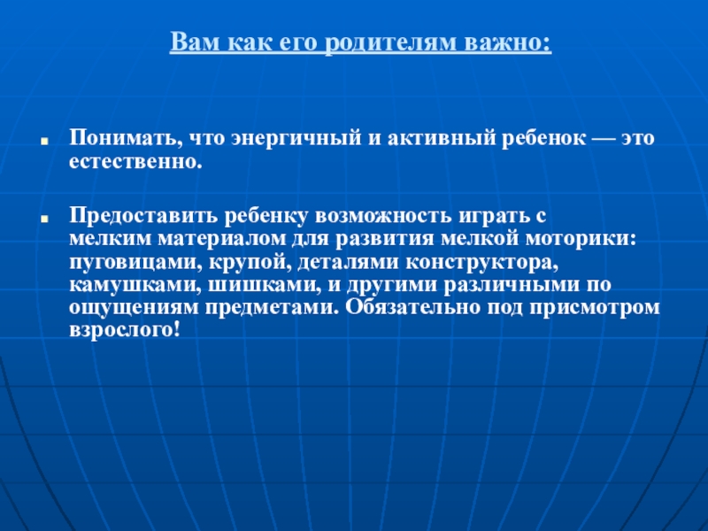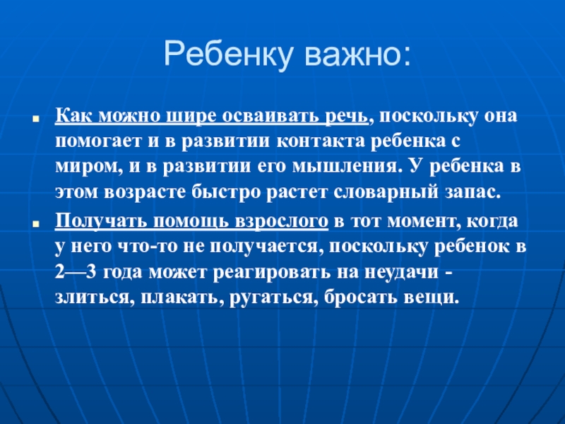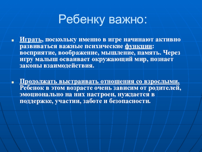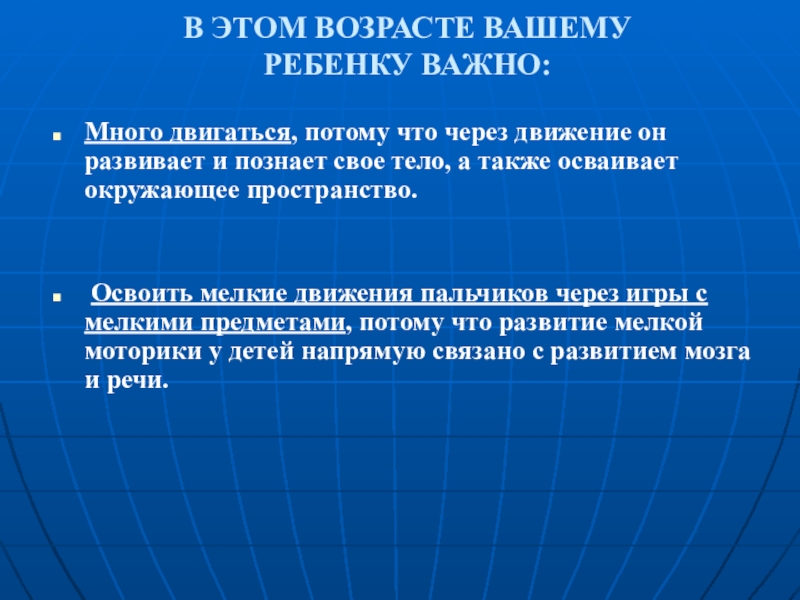 Слайд 5В ЭТОМ ВОЗРАСТЕ ВАШЕМУ РЕБЕНКУ ВАЖНО: