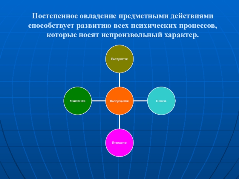 Слайд 3Постепенное овладение предметными действиями способствует развитию всех психических процессов, которые носят
