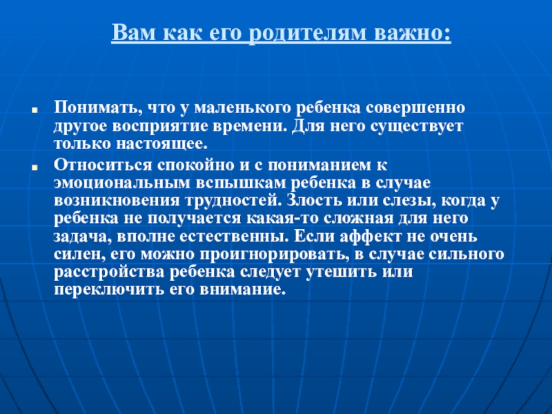 Понимать, что у маленького ребенка совершенно другое восприятие