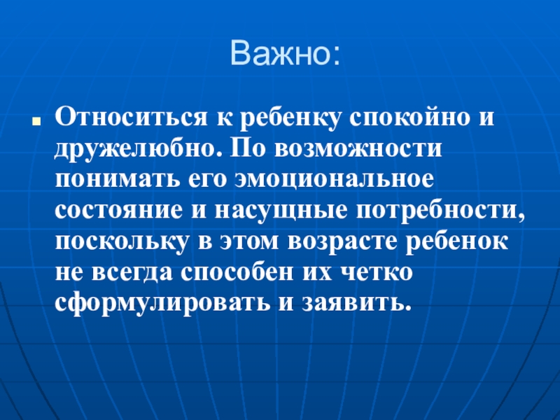 состояние и насущные потребности, поскольку в этом возрасте ребенок не всегда способен их четко сформулировать и заявить.