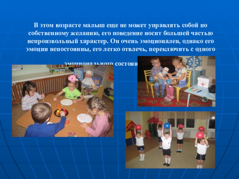 Слайд 11В этом возрасте малыш еще не может управлять собой по собственному желанию, его