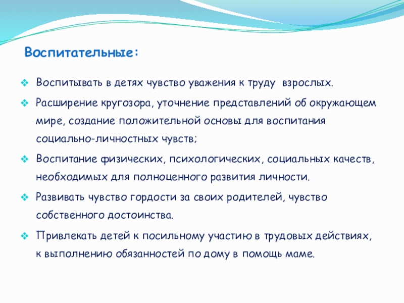 У детей должно быть сформировано чувство гордости за своих родителей и желание помогать им.