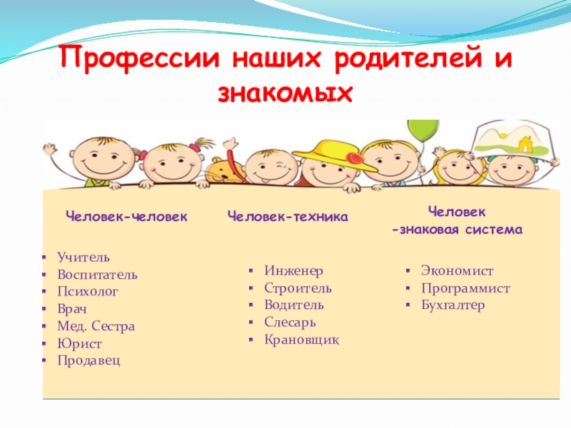 Что мы знаем? что взрослые работают; незначительные названия профессий