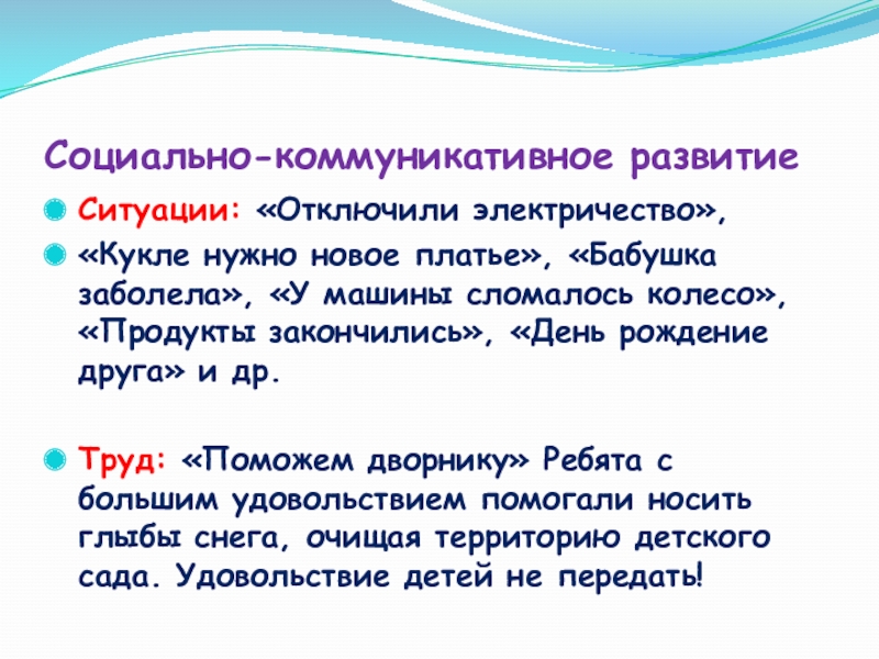 «Кукле нужно новое платье», «Бабушка заболела», «У машины