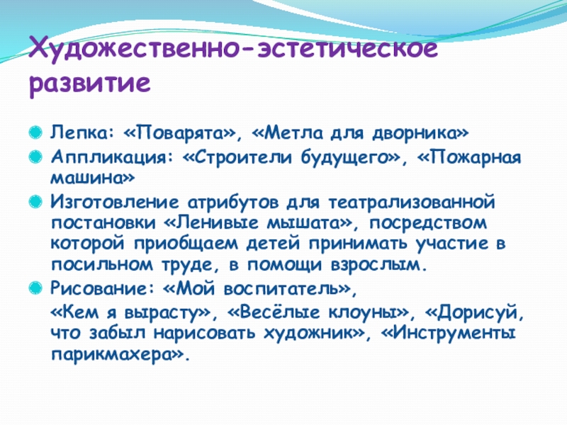 «Кем я вырасту», «Весёлые клоуны», «Дорисуй, что забыл нарисовать художник», «Инструменты парикмахера».