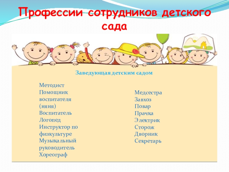 Расширять знания детей о родных людях, их профессиях, значимости их труда в семье и обществе; о труде сотрудников детского сада;