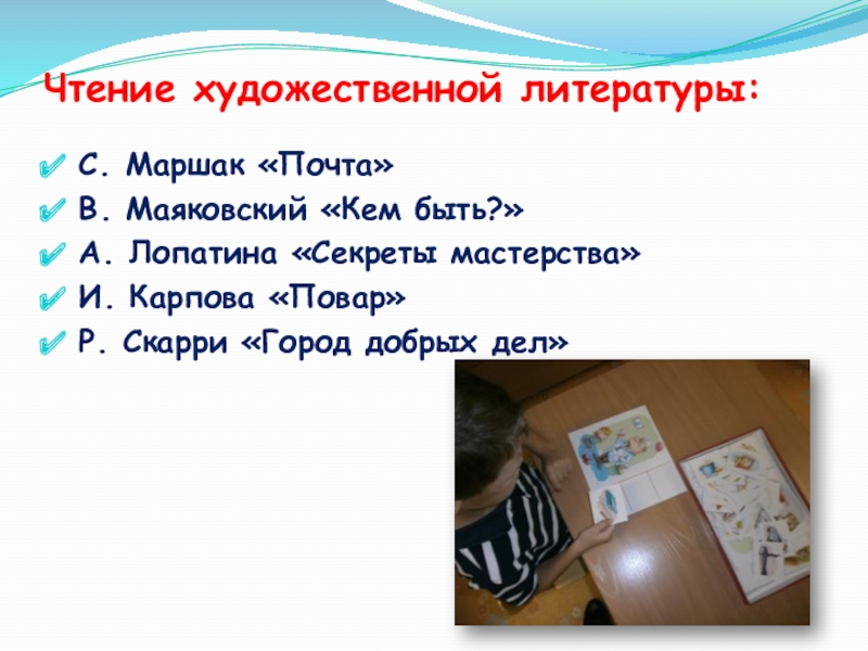 родителей и работников детского сада; связывают некоторые продукты труда с профессией.