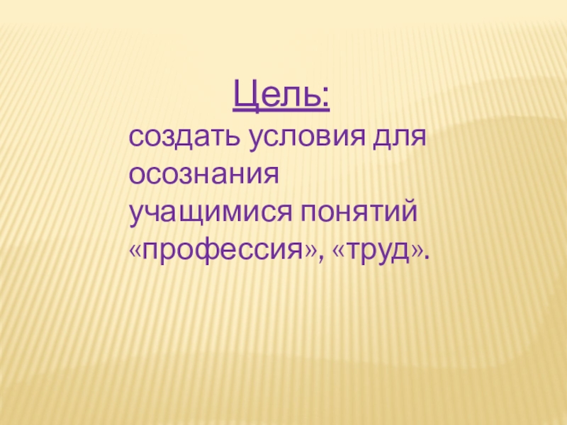 создать условия для осознания учащимися понятий «профессия», «труд».