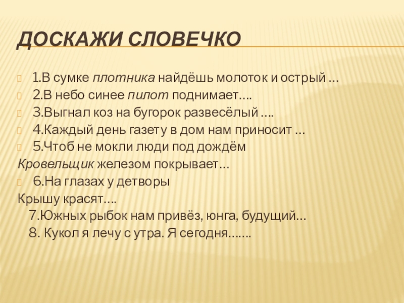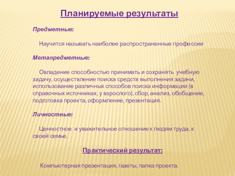 подвести обучающихся к осознанию гордости за своих родителей и за результаты труда.