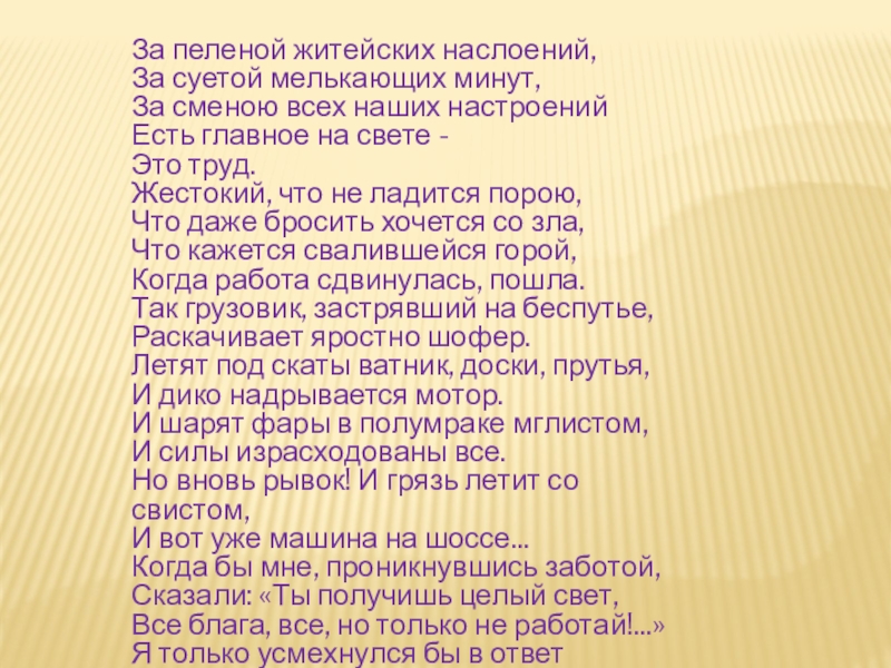 « Работа избавляет нас от трёх великих зол: скуки, порока и нужды»