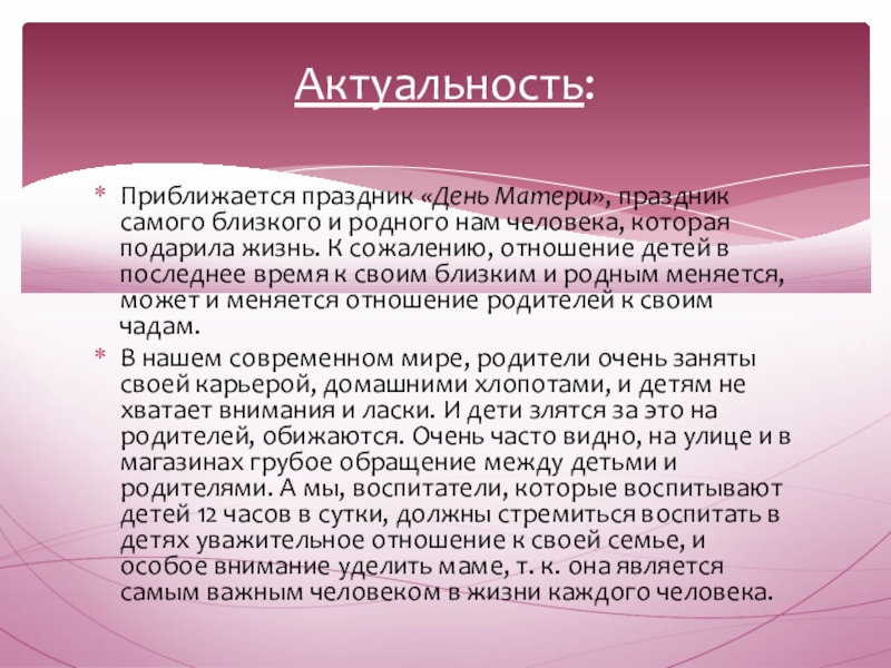 Актуальность: