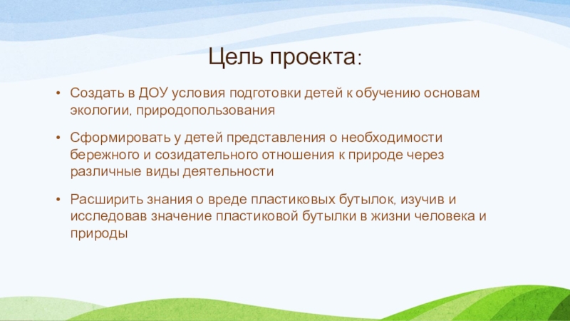 Расширить знания о вреде пластиковых бутылок, изучив и исследовав значение пластиковой бутылки в жизни человека и природы