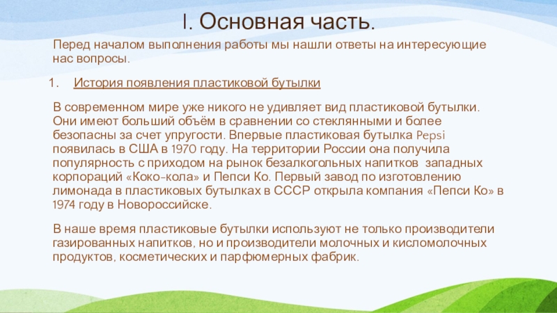 Слайд 10I. Основная часть.