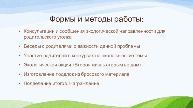 Слайд 9Формы и методы работы: