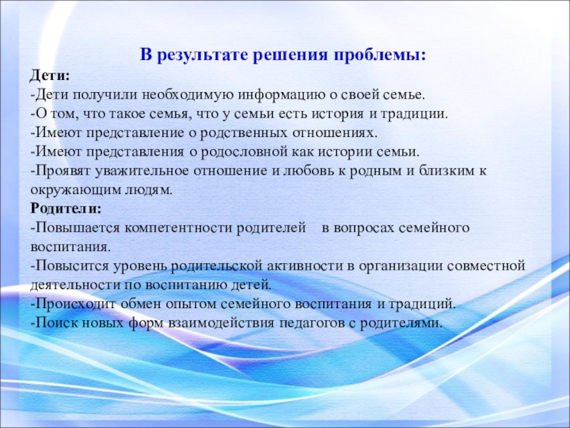 -Повышается компетентности родителей в вопросах семейного воспитания.