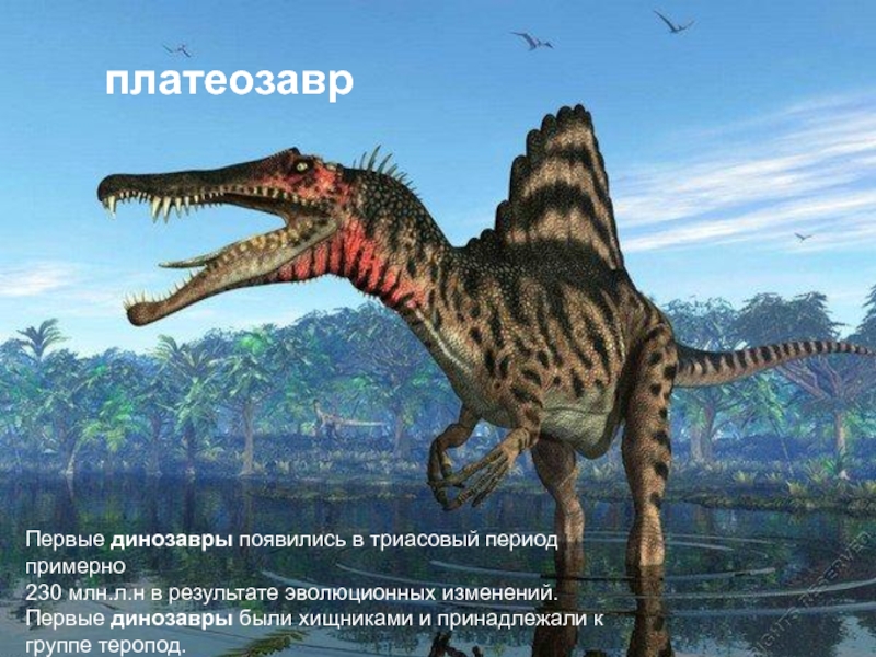 Слайд 5Первые динозавры появились в триасовый период примерно