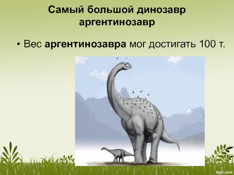 Слайд 30Самый большой динозавр аргентинозавр