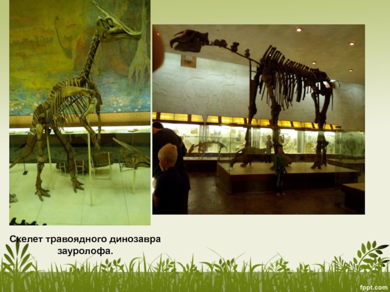 Слайд 40Скелет травоядного динозавра зауролофа.