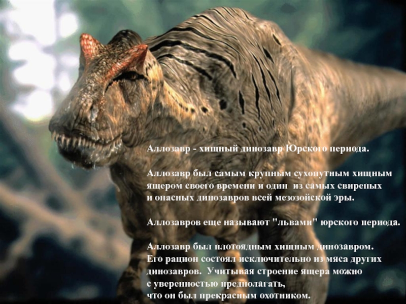 Слайд 12Аллозавр - хищный динозавр Юрского периода.