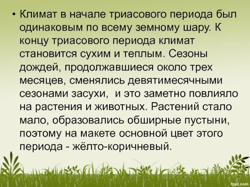 Слайд 4Климат в начале триасового периода был одинаковым по всему земному шару.