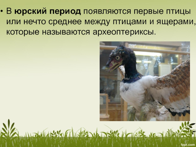 Слайд 15В юрский период появляются первые птицы или нечто среднее между птицами и ящерами,