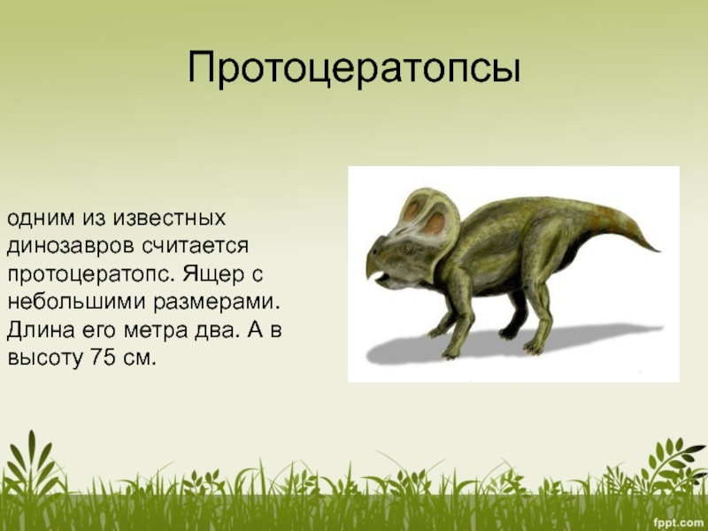 одним из известных динозавров считается протоцератопс. Ящер с небольшими размерами.