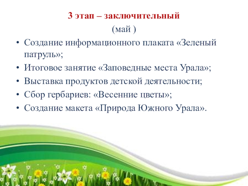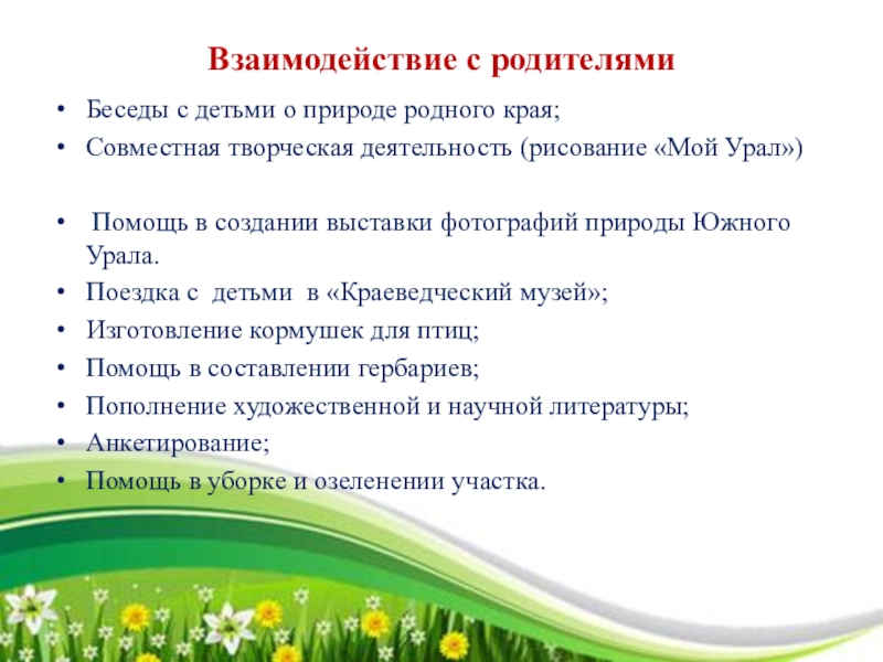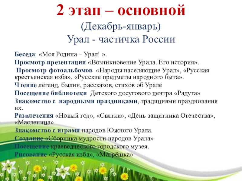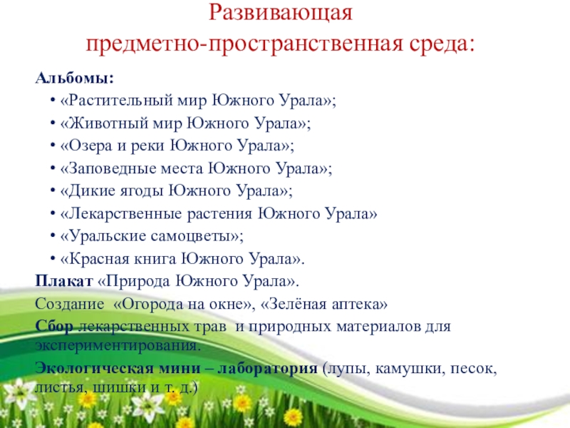 5. Развивать интерес к родному краю, формировать представления детей об экологических проблемах Урала.
