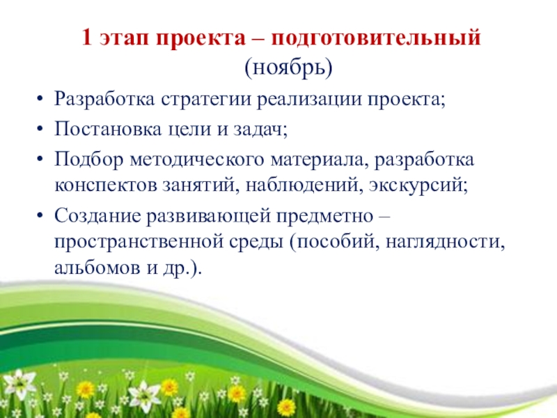 Подбор методического материала, разработка конспектов занятий, наблюдений, экскурсий;