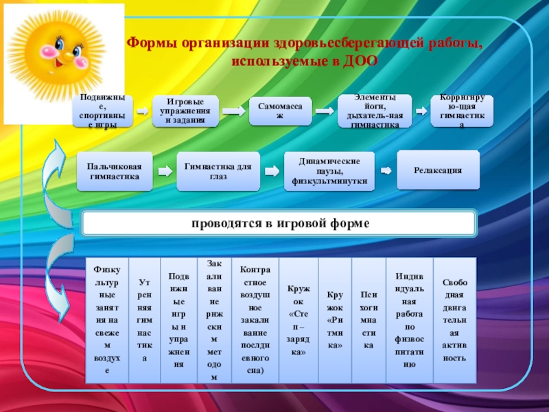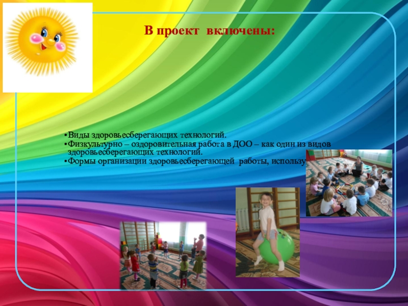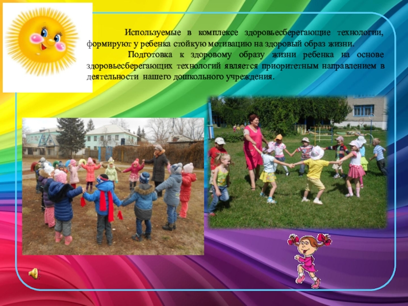 Темы «Здоровье», «Здоровый образ жизни» проходят через все виды деятельности ребёнка. В детском саду проводится физкультурно – оздоровительная работа, обеспечивающая поддержку и развитие физического статуса детей.