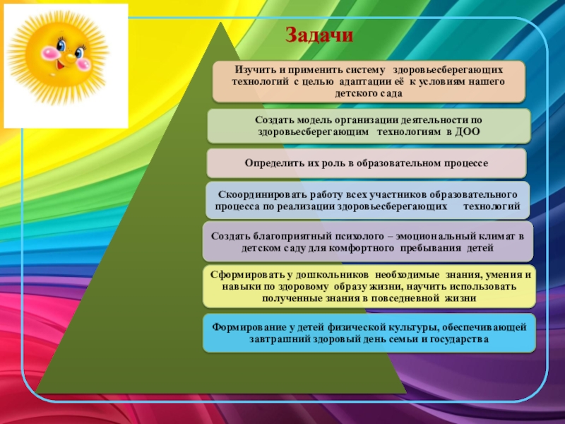 Кроме того, серьезной задачей является и обеспечение максимально высокого уровня здоровья воспитанников детского сада, воспитание валеологической культуры для формирования осознанного отношения к здоровому образу жизни.