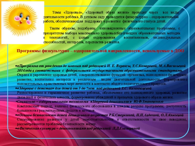Программы физкультурно – оздоровительной направленности, используемые в ДОО