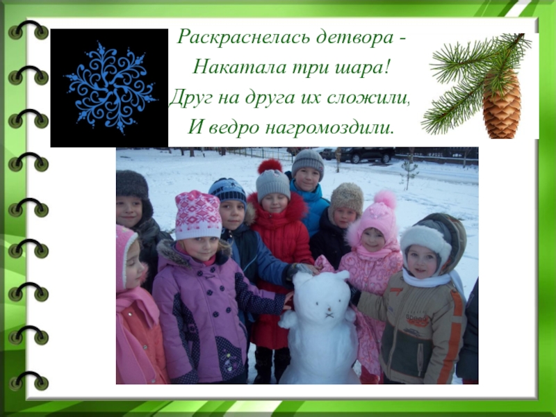 Раскраснелась детвора -Накатала три шара!Друг на друга их сложили,И ведро нагромоздили.
