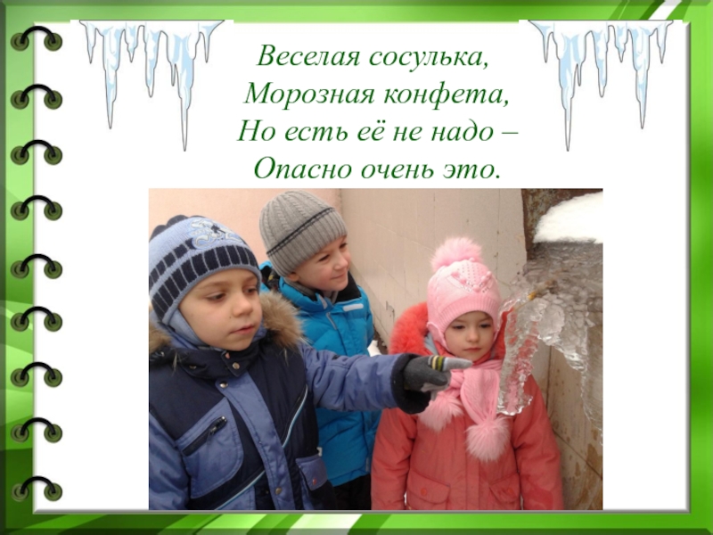 Веселая сосулька, Морозная конфета, Но есть её не надо – Опасно очень это.