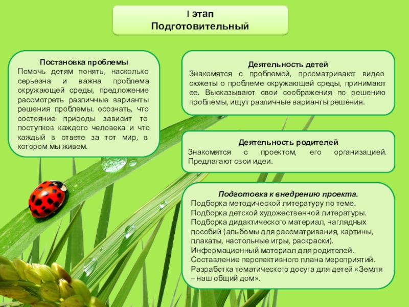 пополнение развивающей среды, организация и проведение цикла бесед по теме проекта