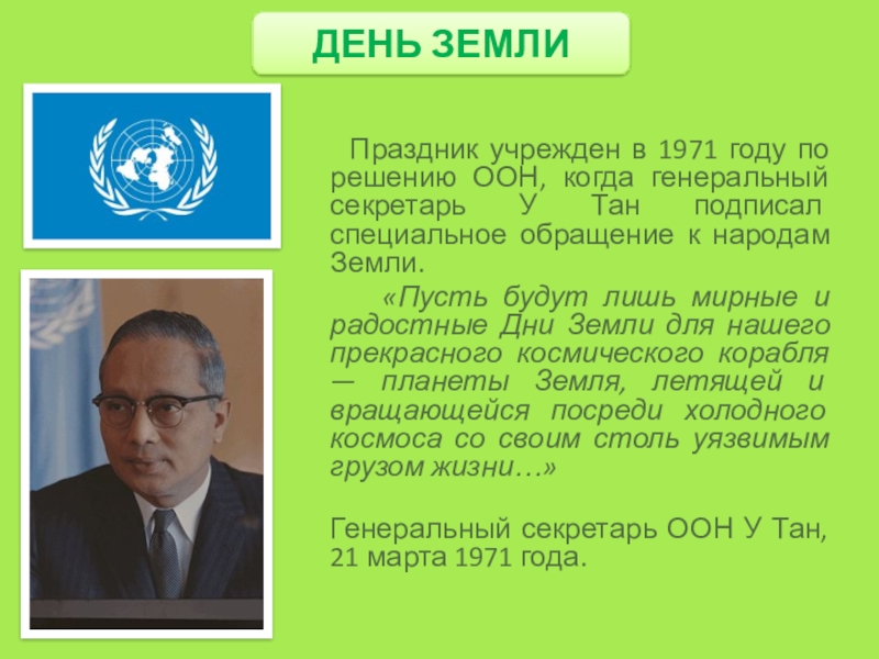 День Земли — это гражданская инициатива, которая призвана объединять всё население планеты в деле защиты окружающей среды.