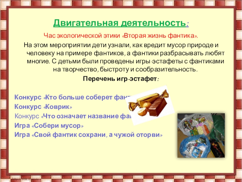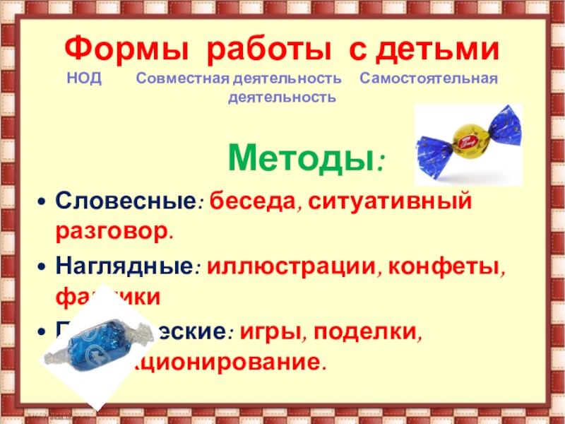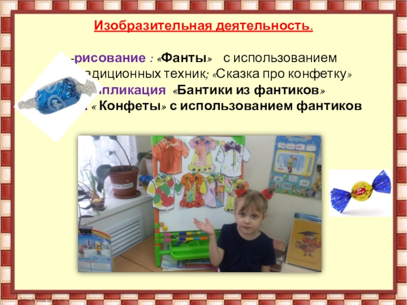 Наглядные: иллюстрации, конфеты, фантики